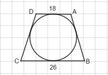 Равнобедренная трапеция АВСD с основаниями АD и ВС описана около окружности, АD=18, BC=26. Найдите АВ.