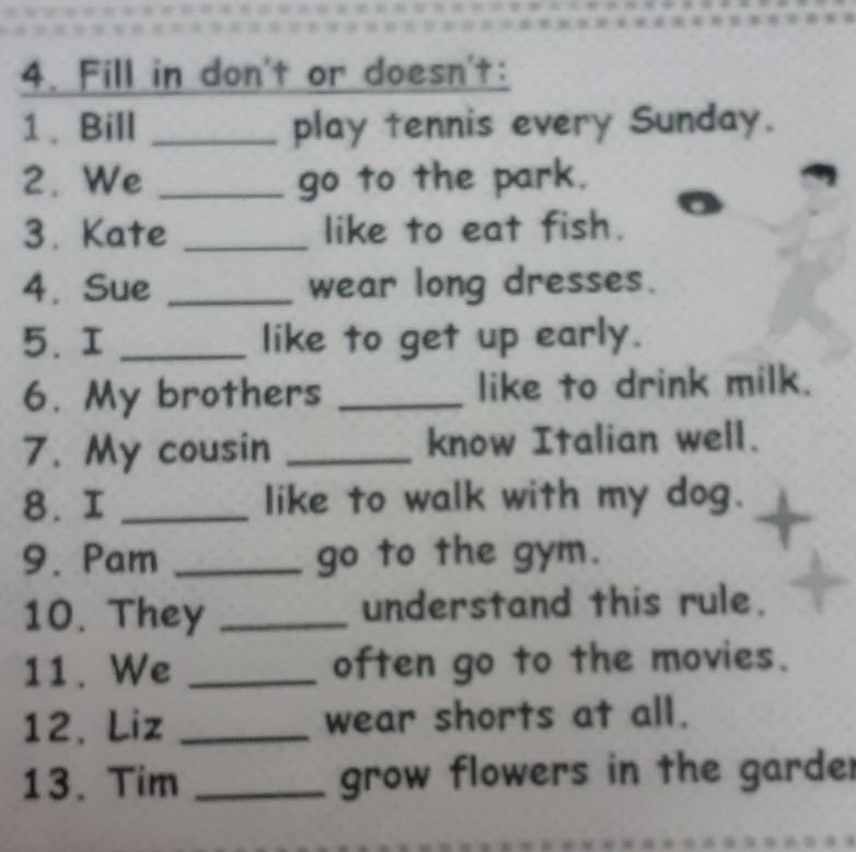 7. doesn't 8. don't 9. doesn't 10. don't 11. don't 12. doesn't 13. doesn't