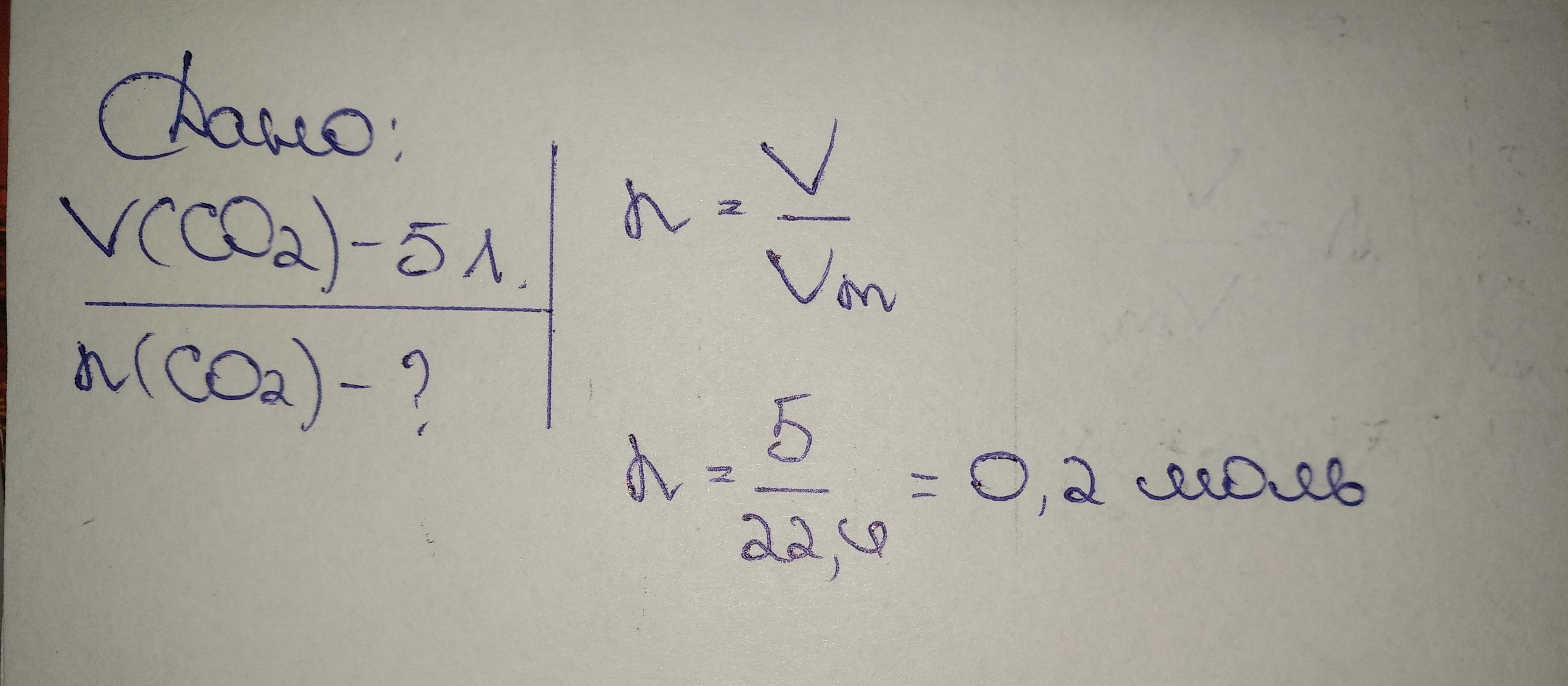 Количество вещества (газа) = Объём газа, делённый на молярный объём (при нормальных условиях, всегда 22,4)