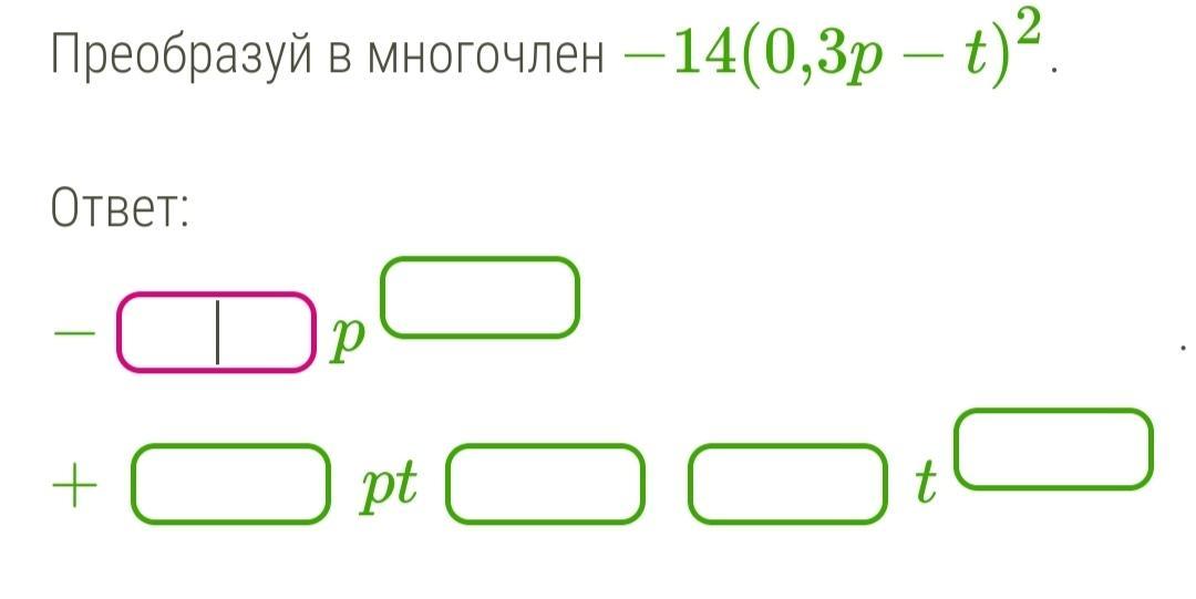 2) - 14(0,3p - t)² = - 1,26p² + 8,4pt - 14t²