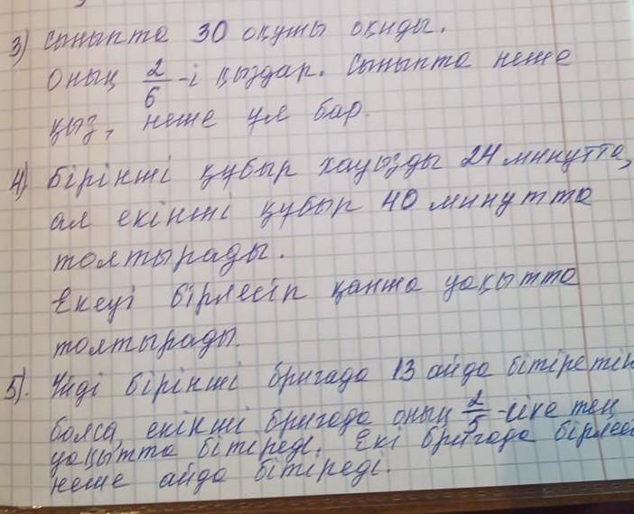 5) екинши бригада жумысты х = 13*2/5 = 5,2 айда битиреди.