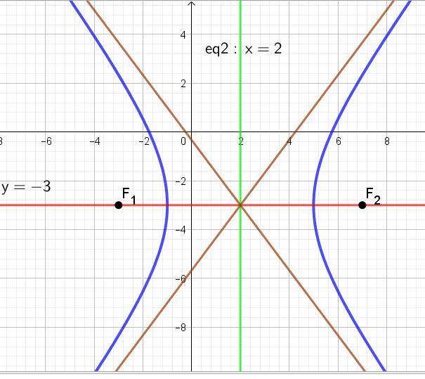 Асимптотами гиперболы будут прямые: у = +-(4/3)(х - 2) - 3.