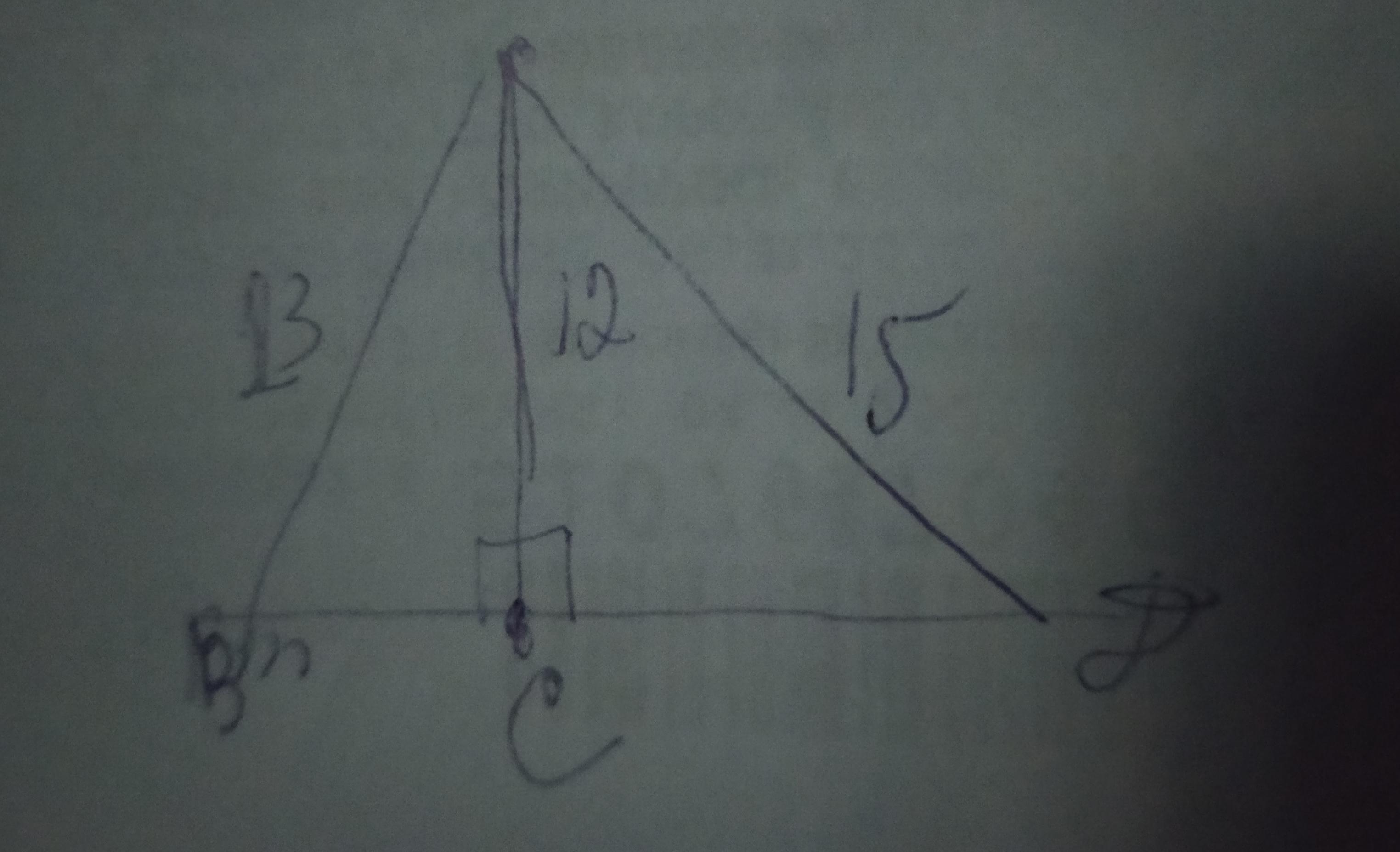 знайдіть відстань між основами похилих проведених із точки а до прямої m якщо відстань від точки а до прямої m = 12 см а довжина похилих 13 см і 15 см