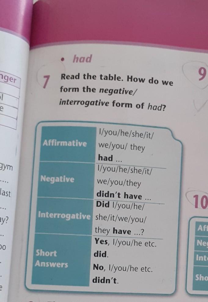 Вот смотри когда ты используешь мейстоминия He/She/It/we/you/they используешь глагол had есть нету