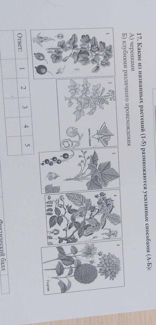 Какие из названных растений (1-5) размножаются указанные способами (А-Б):