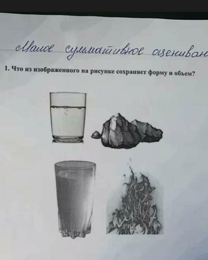 Форму и объём сохраняет камень (если правильно написала, что изображено), так как он твёрдый. А жидкости, как мы знаем, имеют объём, но не имеют формы.