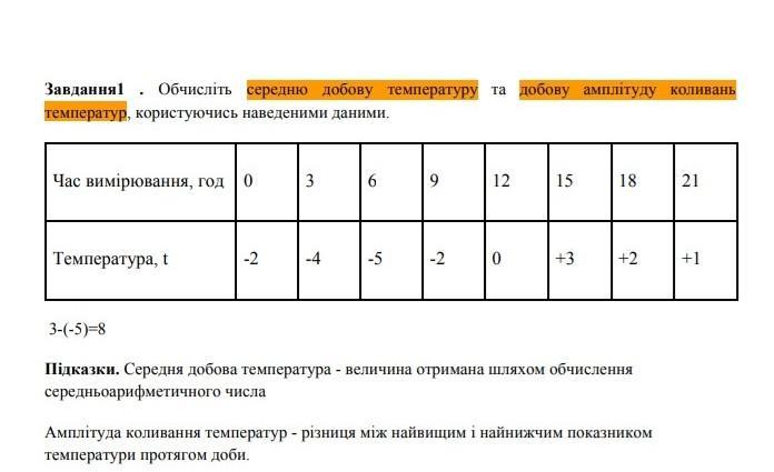 (-2+(-4)+(-5)+(-2)+0+3+2+1)÷8=-0,875 або -1 середня добова