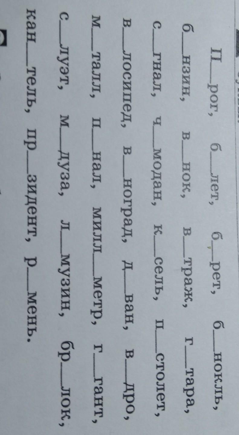 Пирог, балет, берет, бинокль, бензин, венок, витраж, гитара, сигнал, чемодан, кисель, пистолет, велосипед, виноград, диван, ведро, металл, пенал, миллиметр, гигант, силуэт, медуза, лимузин, брелок, канитель, президент, ремень.