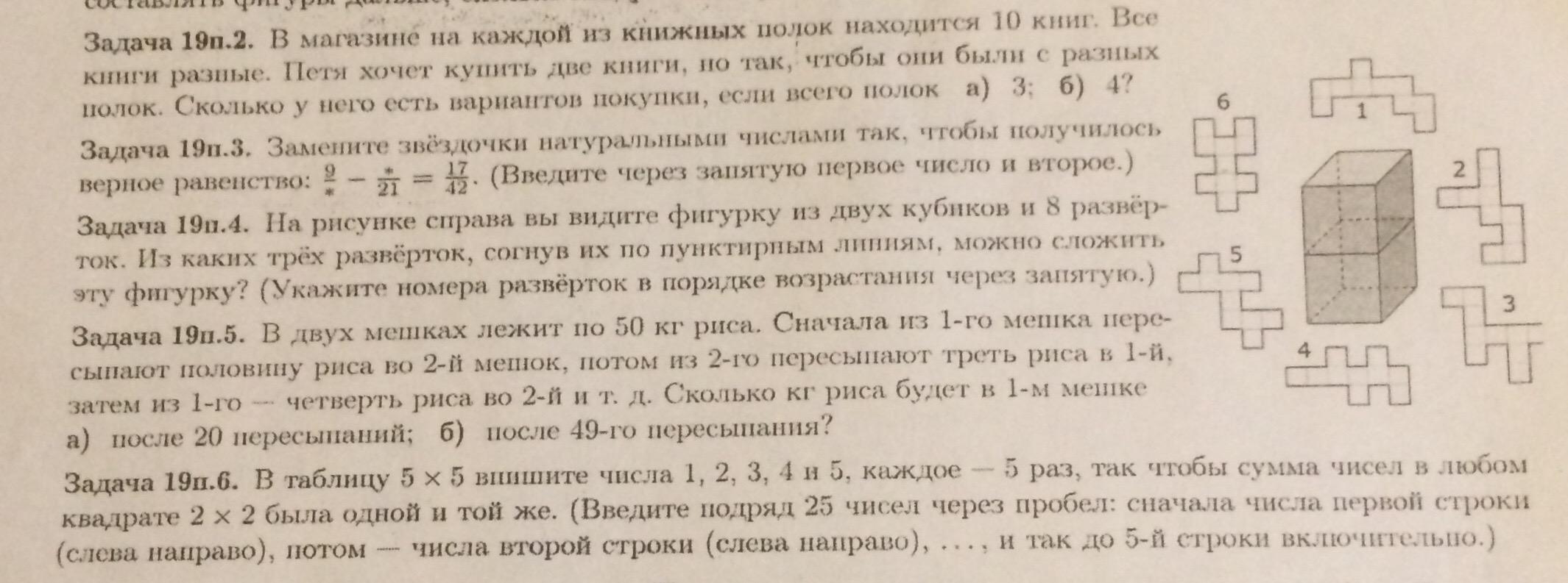 19.2: а)3, б)6; 19.3: 4, 2; 19.5: а)50, б) 49