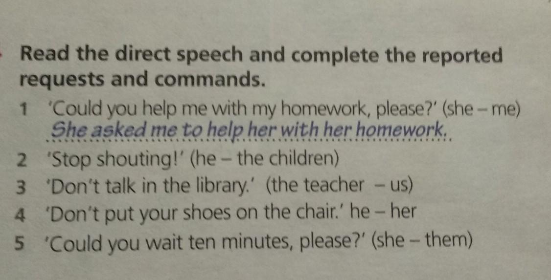 5 'Could you wait ten minutes, please?' (she - them) She asked them to wait ten minutes.