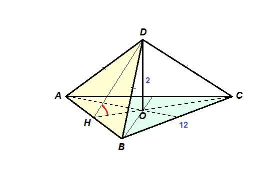 значит ∠DHO - линейный угол двугранного угла между плоскостями (АВС) и (ABD).