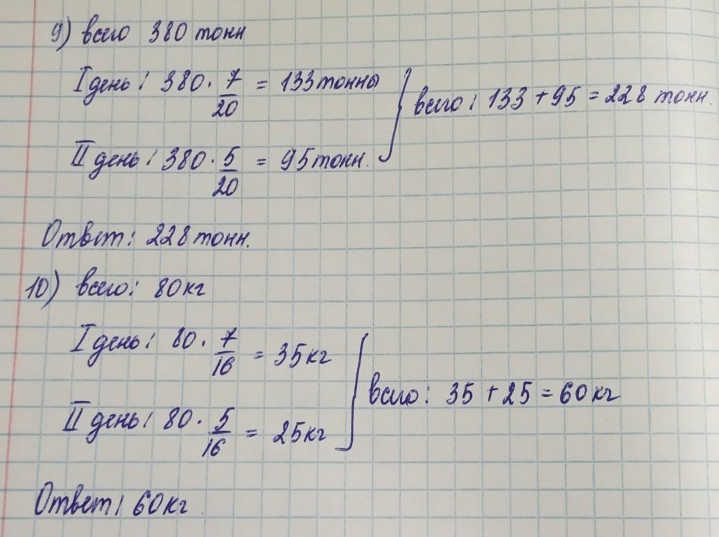 9. На заправці було 380 тонн палива. Першого дня використали 7/20 палива, а другого - 5/20 палива. Скільки тонн палива використали за два дні?