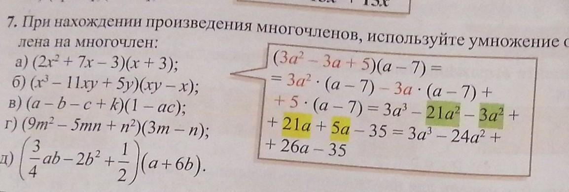 при нахождение произведения многочленов Используйте умножение одночлена на многочлен. Нужен для сегодня пж помогите!!
