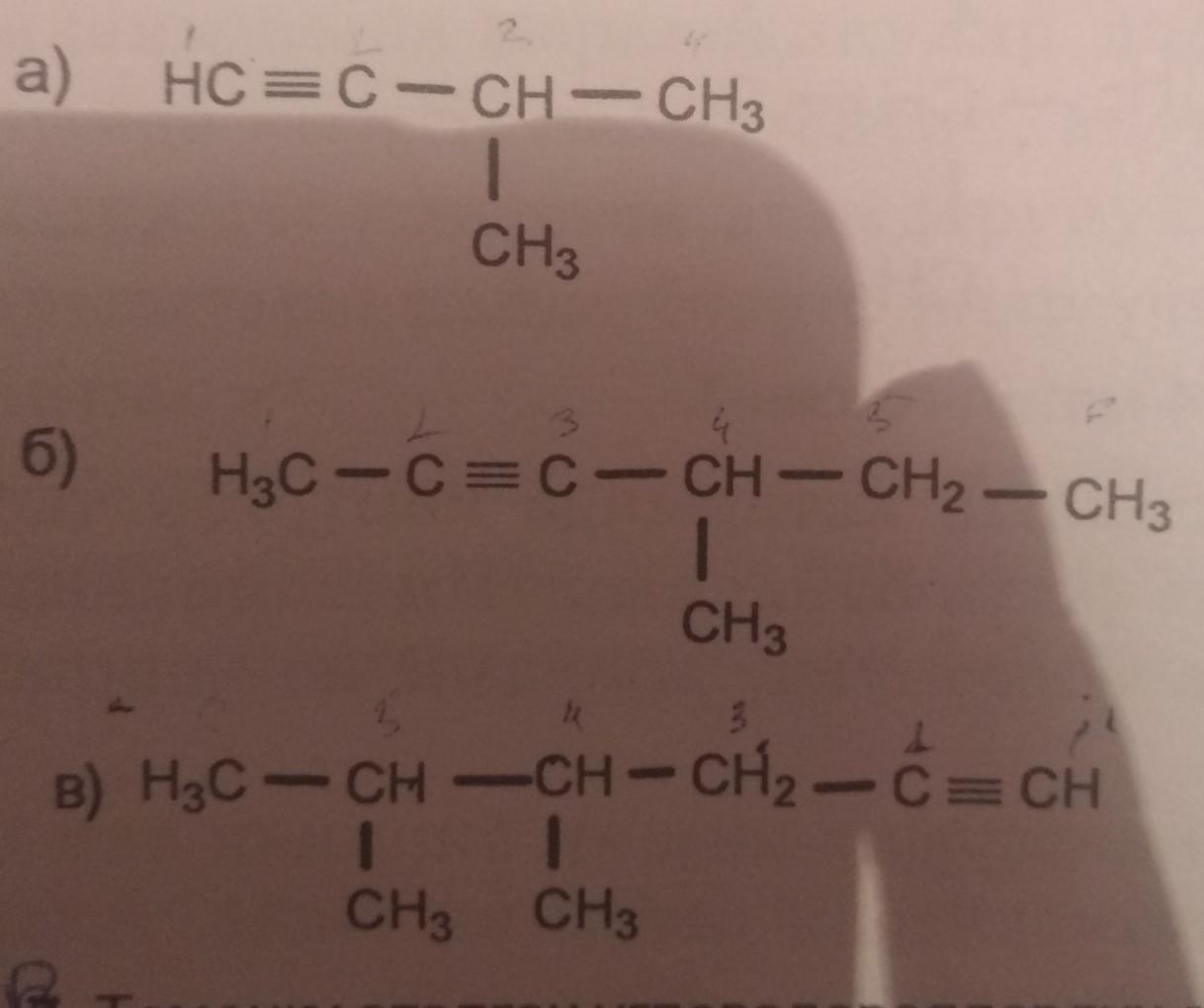в)H3C-CH-CH3-CH-CH3-CH2-C≡CH нужно называть системаные номенклатуры