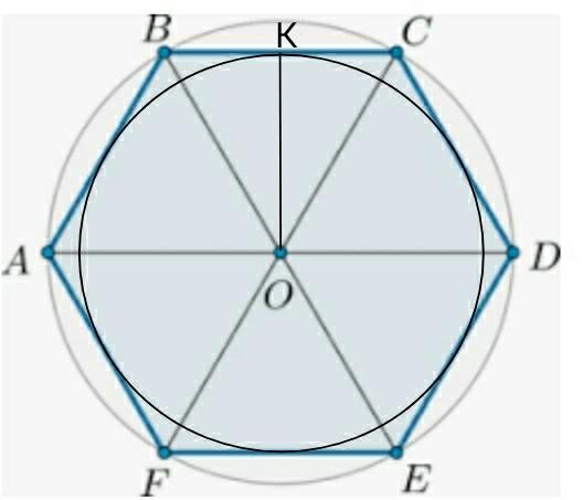 найдите длину окружности вписанной в правильный шестиугольник если диаметр окружности описанной около этого шестиугольника равен 12.