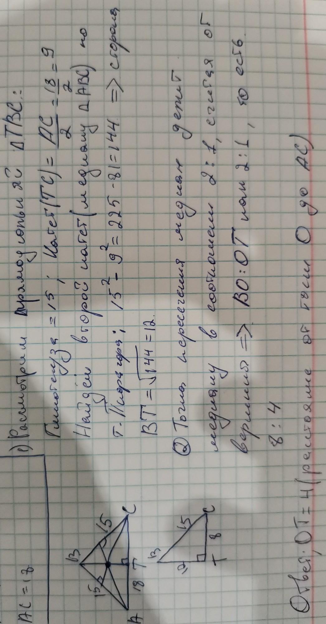 Ответ: OT=4 (расстояние от точки о до середины отрезка АС (точка Т))