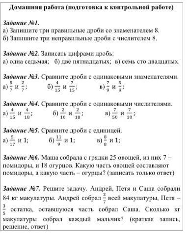 Матиматика дроби и другие задания описание всех заданий в скриншоте