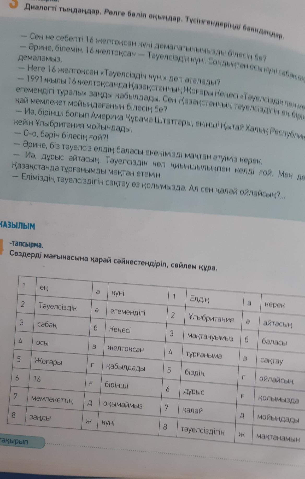 Сөздерді мағынасына қарай сәйкестендіріп, сөйлем құра.