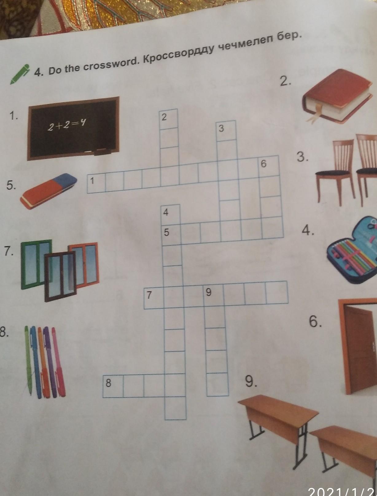 1 Blackboard, 2 book, 3 chair, 4 pencil box