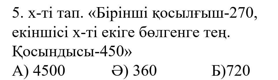 х-ті тап.Бірінші қосылғыш 270 екіншісі х-ті екіге бөлгенге тең.Қосындысы 450