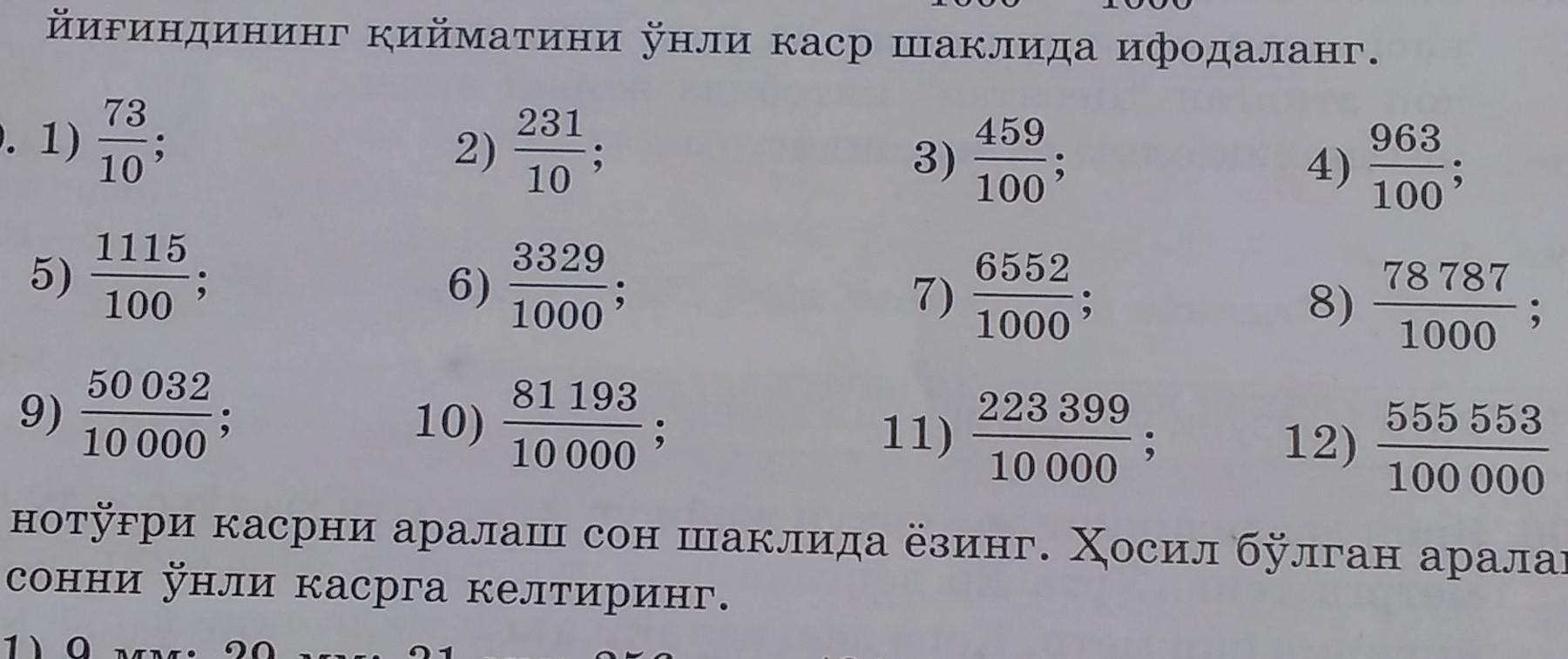 1)7,3 2)23,1 3)4,59 4)9,63 5)11,15 6)3,329 7)6,552 8)78,787 9)5,0032 10)8,1193 11)22,3399 12)5,55553