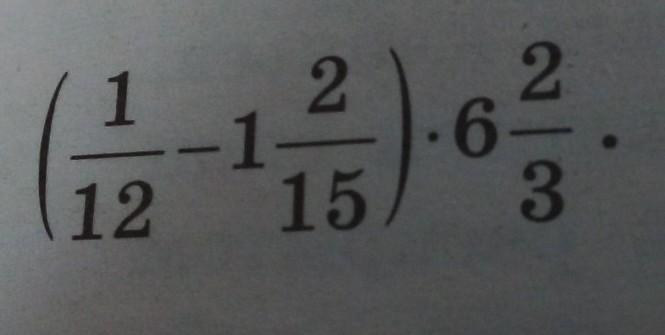 (\frac{1}{12} - 1\frac{2}{15}) * 6\frac{2}{3}  = (\frac{1}{12} - \frac{17}{15}) * \frac{12}{3} =  (\frac{5}{60} - \frac{68}{60}) * 4 = -\frac{63}{60}  * 4 = -\frac{252}{60} = -\frac{126}{30} = -\frac{63}{15} = -\frac{21}{5} = -4\frac{1}{15}