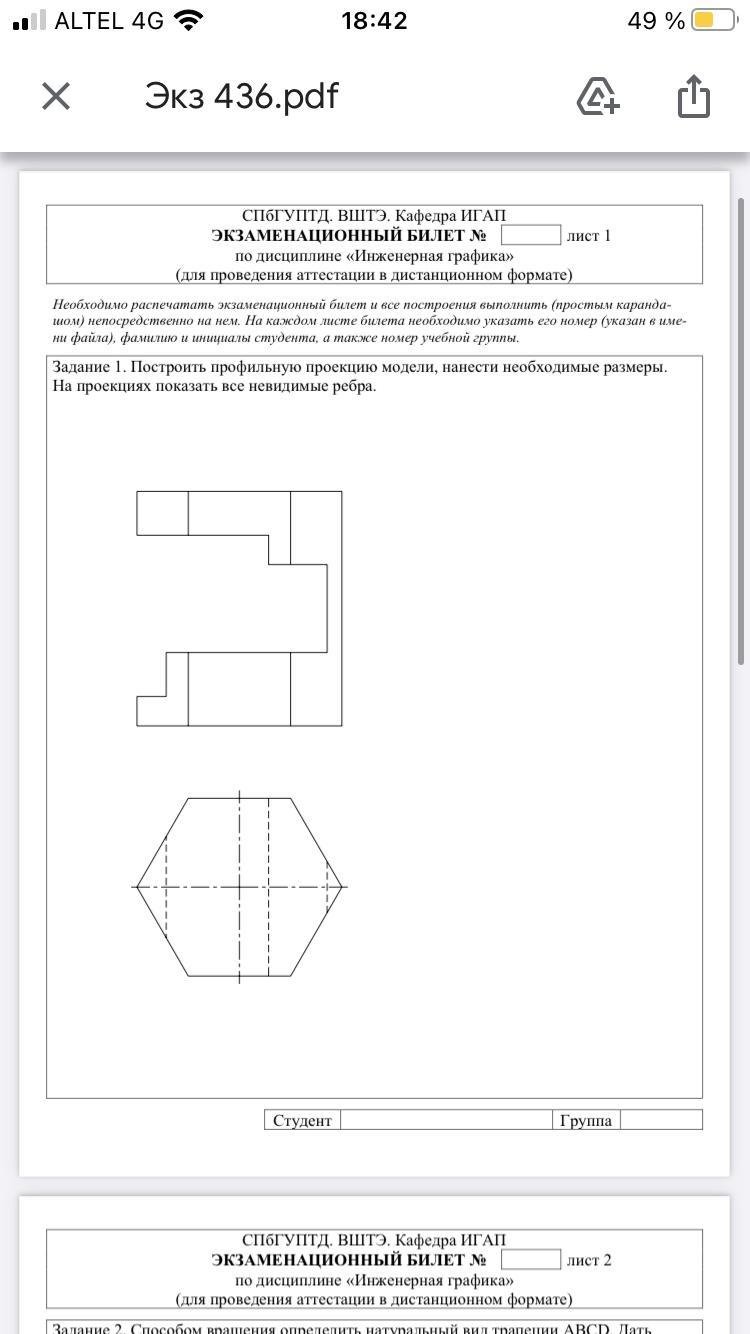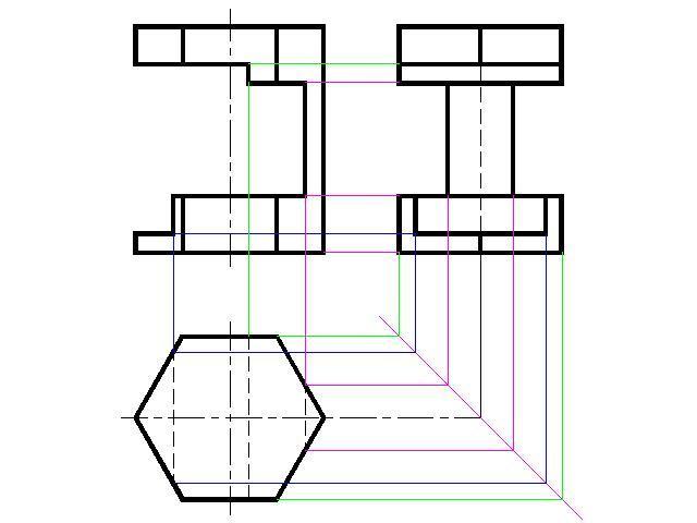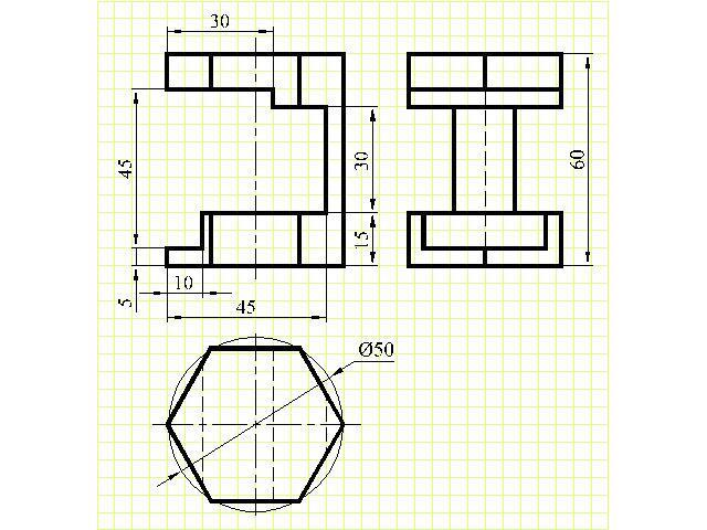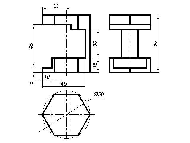 Построить профильную проекцию модели, нанести необходимые размеры. На проекциях показать все невидимые ребра.