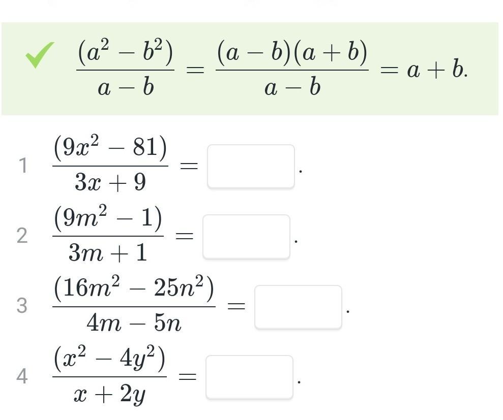 3) (4m-5n)(4m+5n)/(4m-5n)=4m+5n