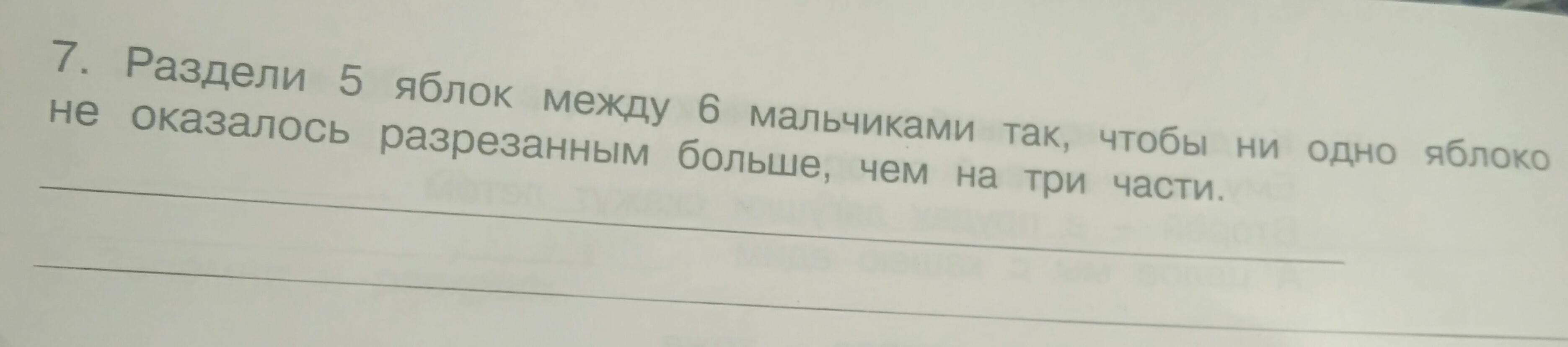 3 яблока подели по половинам, 2 яблока на 3 части каждому мальчику даём половину яблока и треть яблока.