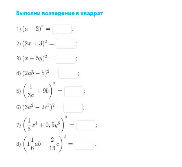 5)(1/3a +9b)^2=1/9a^2 +6b/a +81b^2