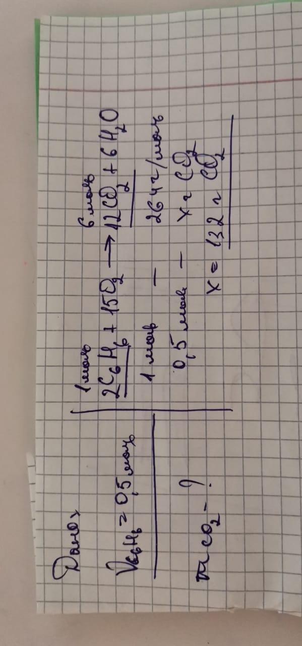 Напишите уравнение реакции горения бензола. Сколько граммов окиси углерода (lV) образуется при сгорании 0,5 моля бензола?