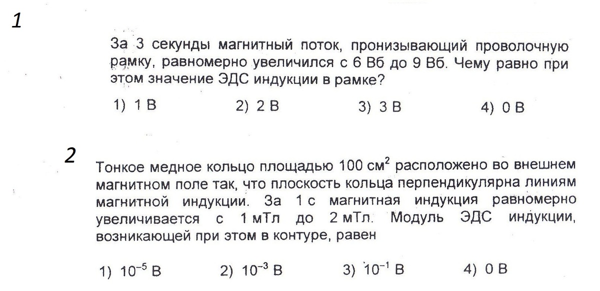 ЭДС = 100*10^(-4)*(2*10^(-3)-1*10^(-3))/1= 0,00001 В = 10^(-5) В