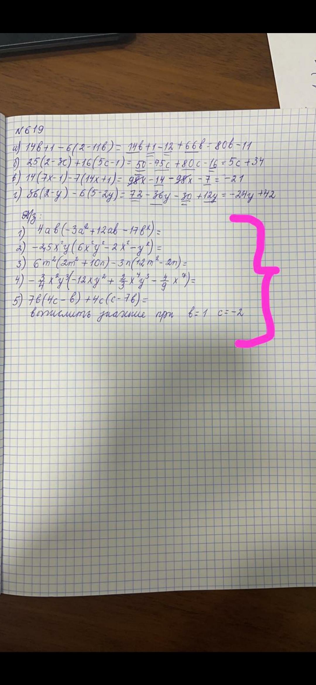 5) 7в(4с - в) + 4с(с - 7в) = при в = 1; с = -2.