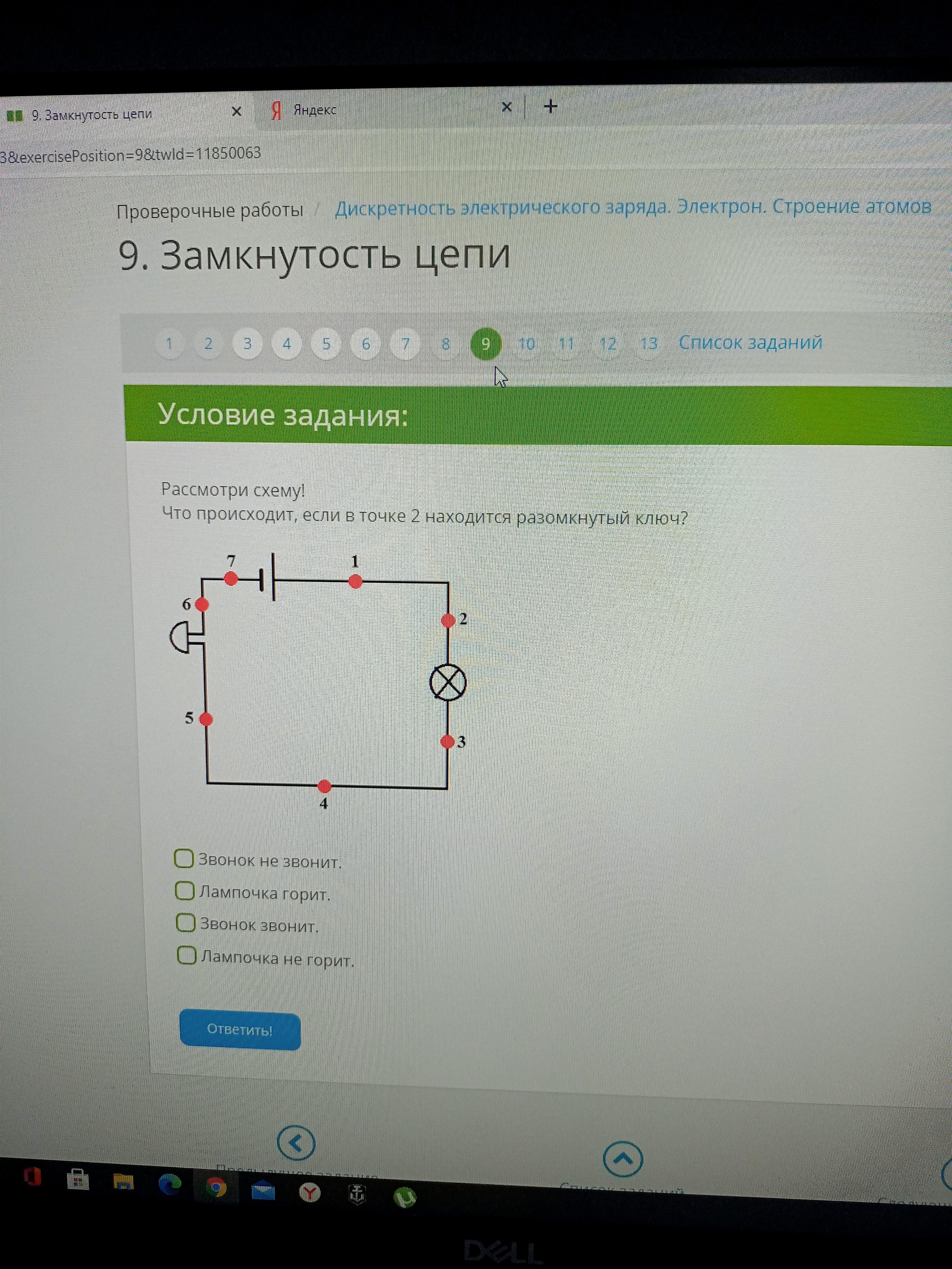 Расмотри схему! Что происходит,если в точке 2 находится разомкнутый ключ?