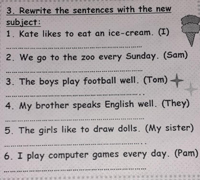 Вообщем вместо Kate будет I и тогда вместо третьего лица "likes" оно изменится от первого лица на "like".
