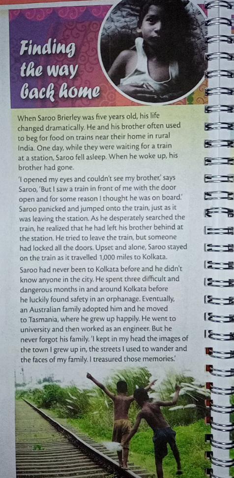 Ответ: Сару Брайерли было 5 лет, когда его жизнь кардинально изменилась. Они с братом, бывало, просили еду в поездах недалеко от дома в индийской деревне. Как-то раз, когда они ждали поезд на станции, Сару уснул. Когда он проснулся, то обнаружил, что брата нет.