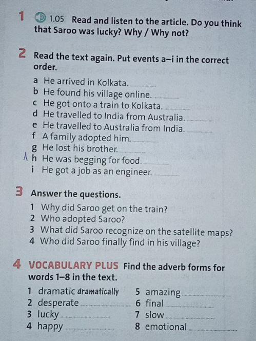 1) In my opinion, when Saroo was living with a foster family, he certainly felt good. But he was never really happy; he always understood that his own mother lived somewhere. And when he finally found his mother, he felt real happiness.