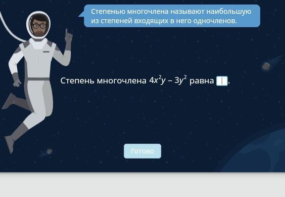 Поскольку степень многочлена - наибольшая из степеней одночлена, то рассмотрим одночлены (тут это 4x^2 * y - 3y^2)
