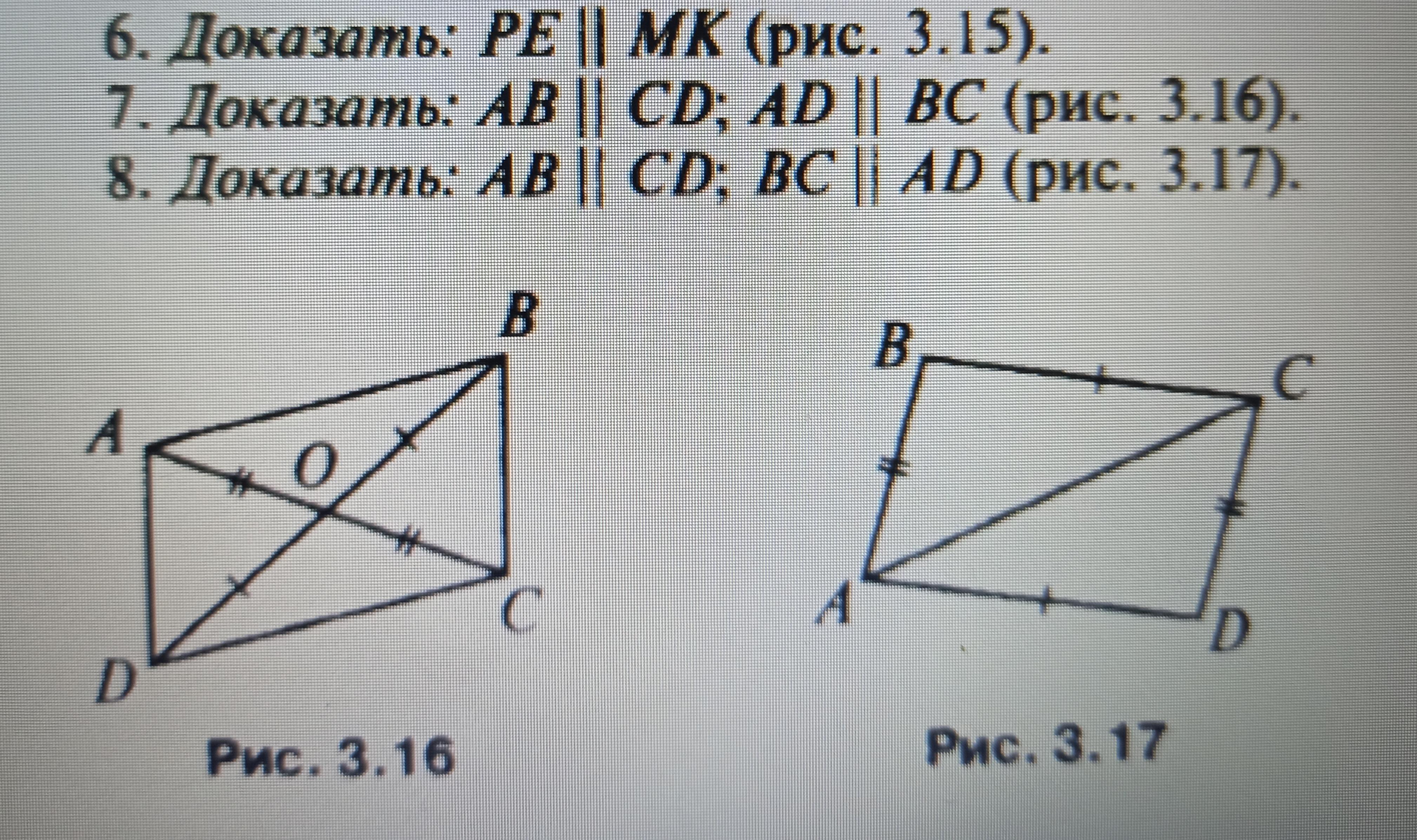 3.16 AoD - вертикален BoC, след-но их углы равны, по усл., Ao=Co, тогда AoD=BoC по двум сторонам и углу между ними, след-но их основания (Ad и Bc) равны, значит, расстояние между точками A,D и C,B равно, а это значит, что прямые параллельны.