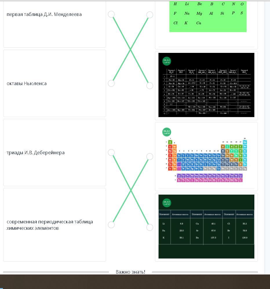 сопоставь названия таблиц классификации химические элементы и изображения, которые их описывают