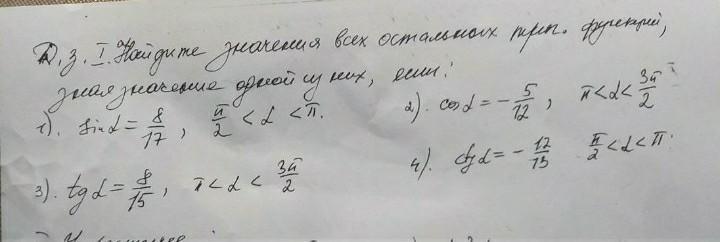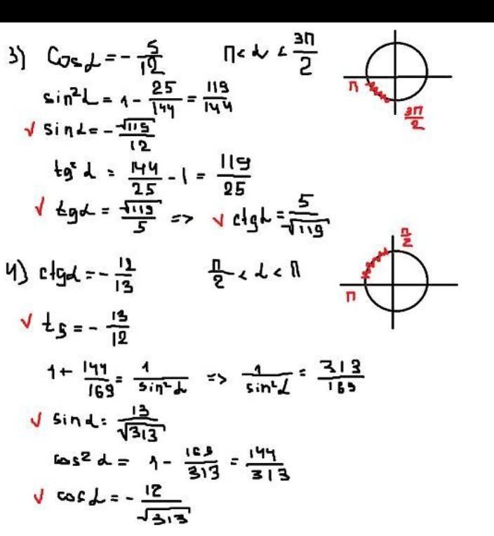 ПОЖАЛУЙСТА ПОМОГИТЕ ООООЧЕНЬ СРОЧНО!!!! НАЙДИТЕ ЗНАЧЕНИЕ ВСЕХ ОСТАЛЬНЫХ ТРИГ. ФУНКЦИИ, ЗНАЯ ЗНАЧЕНИЕ ОДНОЙ ИЗ НИХ, ЕСЛИ: ЗАДАНИЕ 3 и 4.