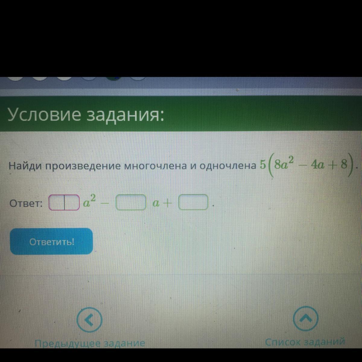 5(8a^2-4a+8) = 5*8a^2-5*4a+5*8 = 40a^2-20a+40