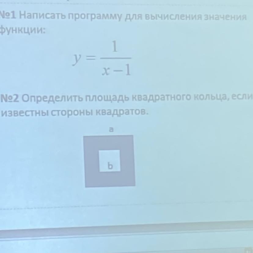 Напишите пожалуйста программу для вычисления Значения функции y=1/х-1.(это первый номер). И второй если можно