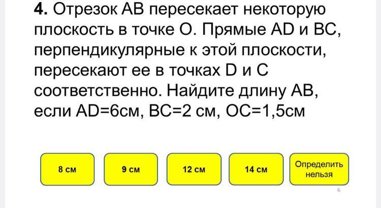 АО=√(AD²+DO²)=√(6²+4,5²)=√(36+20,25)=
