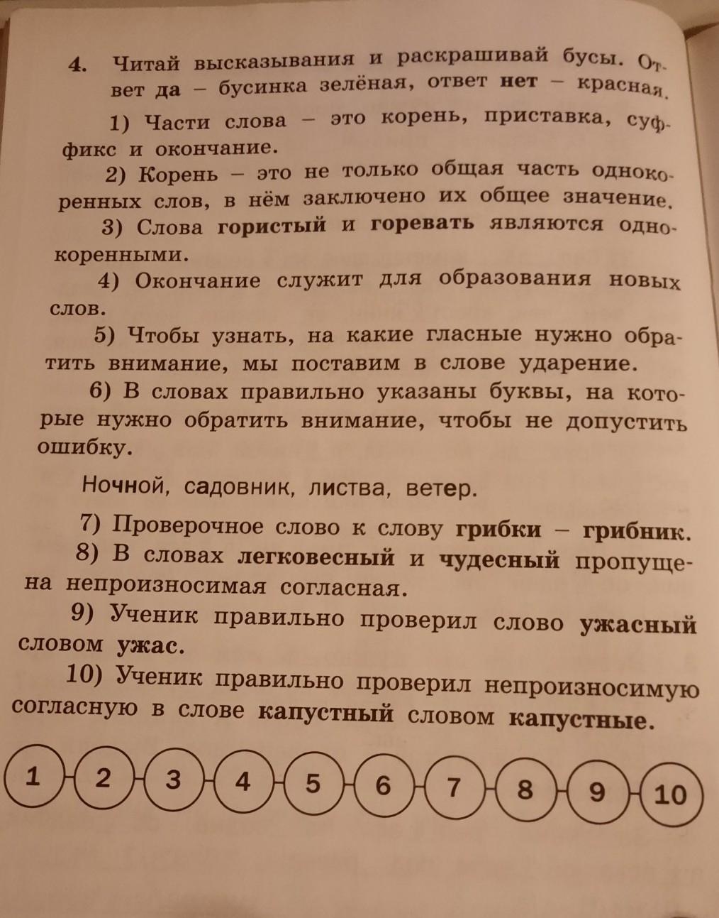 Читай высказывания и раскрашивай бусы. Ответ да - бусинка зелёная, ответ нет - красная.
