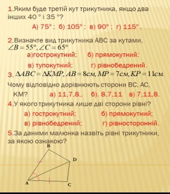 5. АBD=ACD по 1 признаку равенства треугольников (по 2 сторонам и углу между ними)