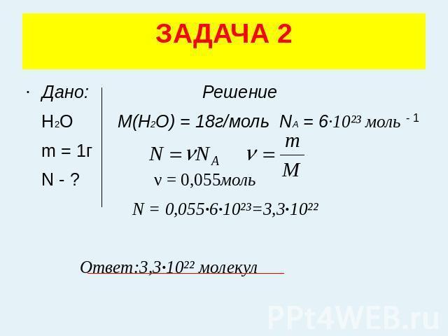 №2 Дано M(H2O) m моль найти m0
