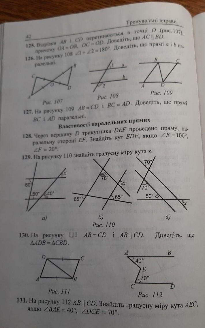 129. а) углы по 80 накрест лежащие, значит прямые параллельны, рассматриваем другую секущую, там <x = 40 как соответственные.