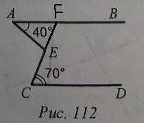 Здесь мы продолжим прямую СЕ до пересечения с АВ в точке F. Так как AB ll CD, то <DCE=<AFE=70 как накрест лежащие. <AEC - внешний угол в AEF.