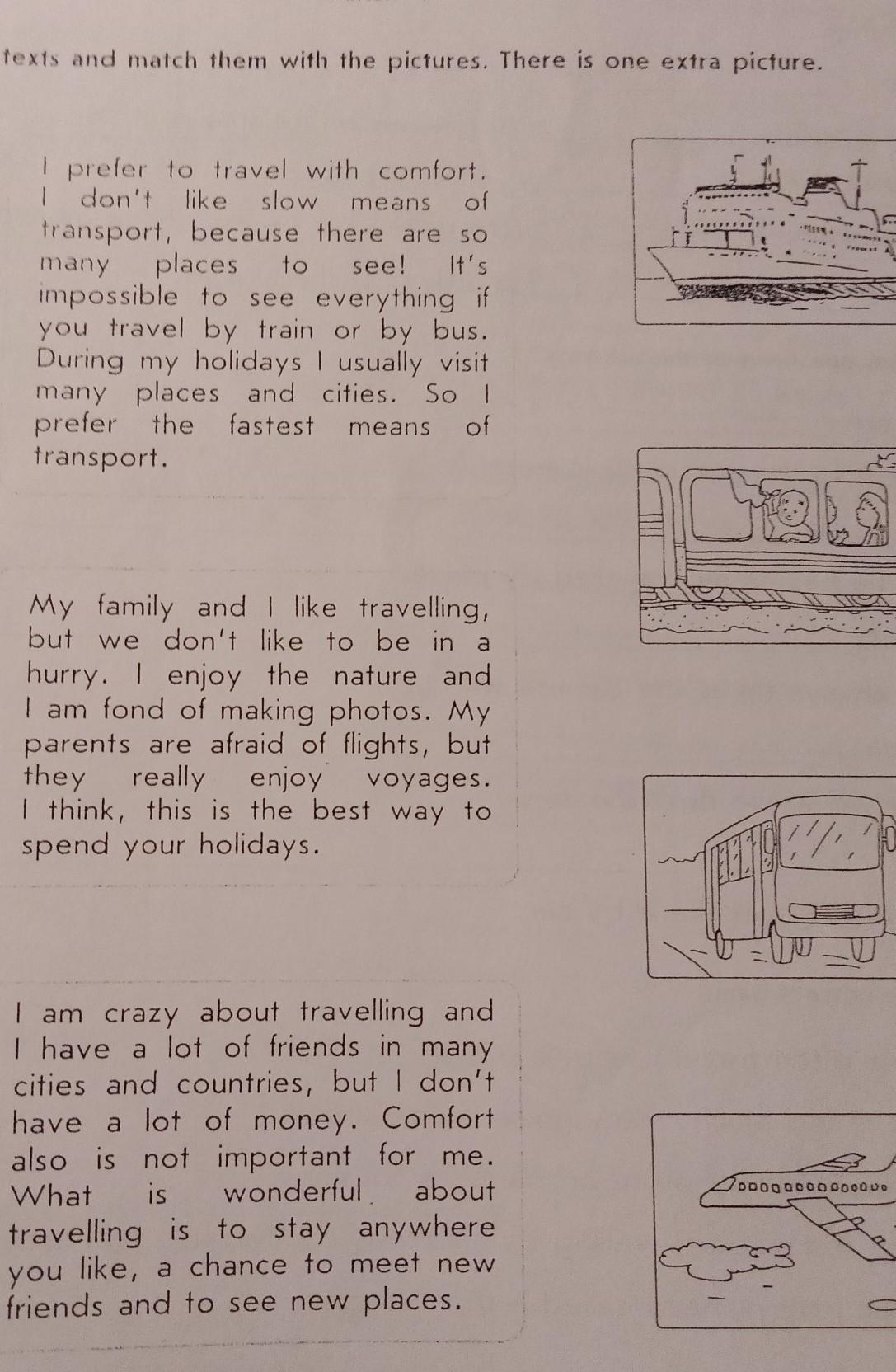 1. "Fastest means of transport" значит картинка 4 с самолётом.